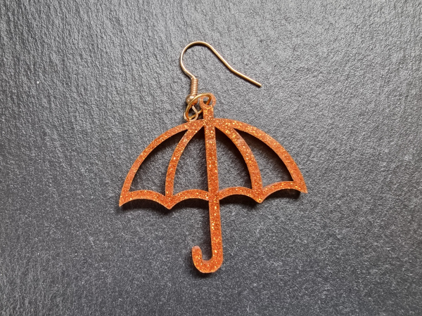 These acrylic glitter orange umbrella earings sparkly enough to brighten are rainy miserable day.