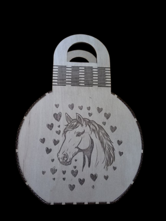 This ornamental laser cut and engraved varnish 3mm plywood bag would make any horse lover heart gallop for this gift.