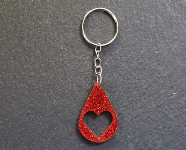 The tear drop keyring with a love heart got out of the middle made from glitter red acrylic would make a nice romantic gift for your sweetheart