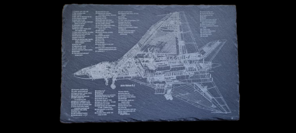 This limted edtion laser engraved varnished dinner plate slate coaster showing the schematics of an Avro vulcan Bomber B2 would be an awesome present for any aircraft enthusiast.